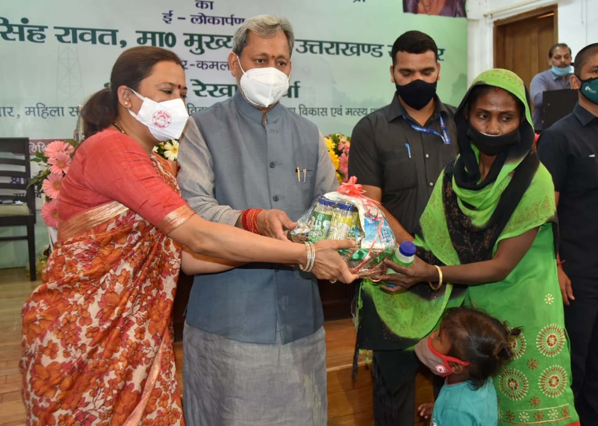 देहरादून, आजखबर। मुख्यमंत्री तीरथ सिंह रावत ने केन्ट रोड स्थित जनता दर्शन हॉल में राज्य समेकित सहकारी विकास परियोजना के अंतर्गत आँंचल बद्री गाय घी, पहाड़ी घी, आर्गेनिक घी, पनीर, डेरी ग्रोथ सेंटर एवं दुग्ध उत्पादक सेवा केन्द्रों का ई-लोकार्पण किया। इस अवसर पर मुख्यमंत्री ने कुपोषित बच्चों को दुग्ध उत्पादों से निर्मित पौष्टिक आहार का वितरण किया।