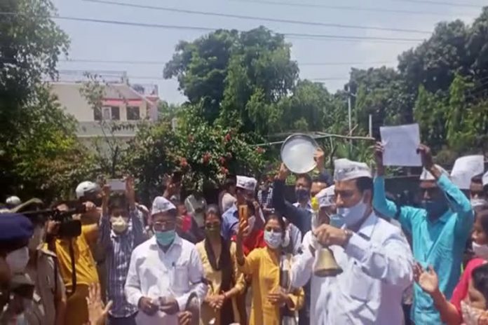 देहरादून। तीन कृषि कानूनों के खिलाफ आंदोलनरत किसानों के समर्थन में आम आदमी पार्टी के कार्यकर्ताओं ने राजधानी देहरादून में प्रदर्शन किया। आम आदमी पार्टी के कार्यकर्ताओं ने बलबीर रोड स्थित भाजपा कार्यालय के बाहर पहुंचकर केंद्र सरकार के खिलाफ जमकर नारेबाजी करते हुए विरोध दर्ज कराया। इस दौरान आप कार्यकर्ताओं ने थालियां बजाकर और कृषि कानूनों की प्रतियां हवा में लहराकर विरोध किया। शनिवार को आम आदमी पार्टी के कार्यकर्ता और नेता बलबीर रोड स्थित भाजपा प्रदेश कार्यालय पहुंचे। वहां पहले से ही मौजूद पुलिस ने भाजपा प्रदेश कार्यालय से पहले ही आप कार्यकर्ताओं को बैरिकेडिंग लगाकर रोक दिया। आम आदमी पार्टी के नेता रविंदर जुगराण के नेतृत्व में कार्यकर्ताओं ने सांकेतिक धरना देते हुए प्रदर्शन किया। इस दौरान उन्होंने भाजपा कार्यालय के बाहर पहुंचकर केंद्र सरकार के खिलाफ जमकर नारेबाजी की। इस मौके पर आम आदमी पार्टी के वरिष्ठ नेता रविंद्र जुगराण ने कहा मोदी सरकार पूरी तरह से दमनकारी नीति अपना रही है। उन्होंने कहा केंद्र की सरकार किसानों के भविष्य को चैपट करने के मकसद और उद्योगपतियों को फायदा पहुंचाने के उद्देश्य से इन तीन बिलों को लेकर आई है। जुगराण ने कहा जो किसान हमारे अन्नदाता हैं और बीते 6 माह से भी अधिक समय से सड़कों पर उतर कर काले कानूनों का विरोध कर रहे हैं, लेकिन सरकार की कानों में जूं तक नहीं रेंग रही है। इसी के चलते आज आप के कार्यकर्ताओं ने भाजपा कार्यालय के उन जन प्रतिनिधियों को जगाने का काम किया जो कृषि कानूनों पर कुंभकर्णी नींद में सो रहे हैं।