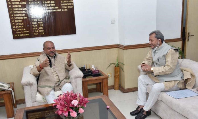 देहरादून । मुख्यमंत्री तीरथ सिंह रावत ने नई दिल्ली में केंद्रीय पंचायती राज, कृषि एवं किसान कल्याण, ग्रामीण विकास मंत्री नरेंद्र सिंह तोमर से भेंट की। मुख्यमंत्री ने राष्ट्रीय सहकारी विकास निगम द्वारा सहायतित और कृषि एवं किसान कल्याण मंत्रालय द्वारा अनुदानित राज्य समेकित सहकारी विकास परियोजना में अनुमन्य अनुदान को हिमालयी और पूर्वोत्तर राज्यों के लिए 20 प्रतिशत से बढ़ाकर 40 प्रतिशत करने का अनुरोध किया।