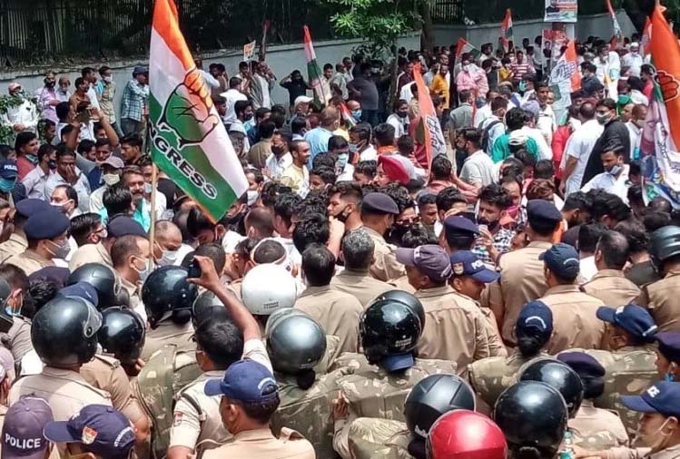 बढ़ती महंगाई, महिला उत्पीड़न, भ्रष्टाचार और किसानों की बदहाली जैसे मुद्दों को लेकर कांग्रेस ने आज सीएम आवास कूच किया। इससे पहले कांग्रेसी कार्यकर्ता और नेता कांग्रेस भवन में एकत्रित हुए। उसके बाद पैदल मार्च निकालते हुए हाथीबड़कला पहुंचे। जहां पहले से ही मौजूद भारी पुलिस बल ने कांग्रेसी नेताओं और कार्यकर्ताओं को बैरिकेडिंग लगाकर रोक दिया।