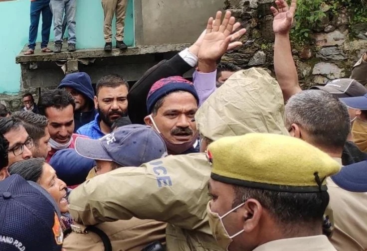 चमोली। बदरीनाथ धाम की तीर्थयात्रा शुरू करने की मांग पर कांग्रेस शुक्रवार को बदरीनाथ धाम कूच किया। इस कूच में स्थानीय लोग भी शामिल हुए। पूर्व मंत्री राजेंद्र भंडारी के नेतृत्व में बदरीनाथ कूच किया गया। वहीं प्रदर्शनकारियों ने पुलिस ने पांडुकेश्वर में रोक दिया । जहां प्रदर्शनकारियों और पुलिस कर्मियों के बीच नोंक-झोंक भी हुई। इस कूच को देखते हुए पुलिस-प्रशासन की ओर से पांडुकेश्वर में बदरीनाथ हाईवे पर बैरिकेडिंग लगाई गई है।यहां करीब 200 पुलिस कर्मियों की तैनाती की गई है। वहीं बदरीनाथ धाम में भी यात्रा संचालन को लेकर आज ही स्थानीय लोगों का धरना-प्रदर्शन का कार्यक्रम था। इससे पहले भी कई बार स्थानीय लोगों ने चारधाम यात्रा शुरू करने की मांग को लेकर प्रदर्शन किया है।कोरोना संक्रमण को ध्यान में रखते हुए चारधाम यात्रा अभी शुरू नहीं की गई है। उत्तराखंड सरकार ने चमोली, रुद्रप्रयाग और उत्तरकाशी जिले के लोगों के लिए यात्रा शुरू करने की अनुमति दी थी।लेकिन नैनीताल हाईकोर्ट ने चारधाम यात्रा पर रोक लगा दी और सुप्रीम कोर्ट का निर्देश आने तक के लिए इस रोक को बढ़ाया है। राज्य सरकार की अपील सुप्रीम कोर्ट में लंबित होने और वहां से अभी कोई निर्णय न होने एवं राज्य सरकार की यात्रा पर रोक जारी रखने के लिए दी गई सहमति के आधार पर हाईकोर्ट ने ऐसा किया है।कोर्ट ने राज्य सरकार से पूछा है कि सरकारी अस्पतालों में चिकित्सकों, नर्सों और तकनीकी स्टाफ के कितने पद रिक्त हैं और इन्हें भरने के लिए क्या कदम उठाए गए हैं।
