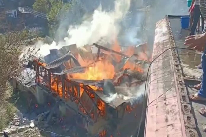 उत्तरकाशी। पुरोला तहसील मुख्यालय के कोर्ट रोड पर उस समय अफरा-तफरी मच गई, जब एक लकड़ी के भवन में अचानक आग लग गई। आग लगने के कारण घर में रखा रसोई गैस सिलेंडर भी फट गया, जिससे आग और विकराल हो गई। भवन में किराए पर रहे 5 परिवार के सदस्यों ने किसी प्रकार भागकर जान बचाई।