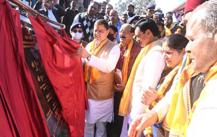 टिहरी/देहरादून। मुख्यमंत्री पुष्कर सिंह धामी ने विधानसभा नरेंद्रनगर क्षेत्रांतर्गत स्थित घंटाकर्ण मंदिर पहुंचकर घण्डियाल देवता के दर्शन व पूजा अर्चना की। इसके उपरांत मुख्यमंत्री, माता मंगला जी व भोले जी महाराज की उपस्थिति में घंटाकर्ण धाम में ठाकुर भगत सिंह सजवाण की मूर्ति स्थल का भूमि पूजन भी किया। मुख्यमंत्री ने इस अवसर पर 16 लाख 50 हजार की लागत से बनी घंटाकर्ण पम्पिंग योजना, 10 लाख की लागत से बने विश्राम गृह, 7 लाख 50 हजार की लागत से बने रैन शेल्टर, बेंचेज व साइनेज का लोकार्पण किया।