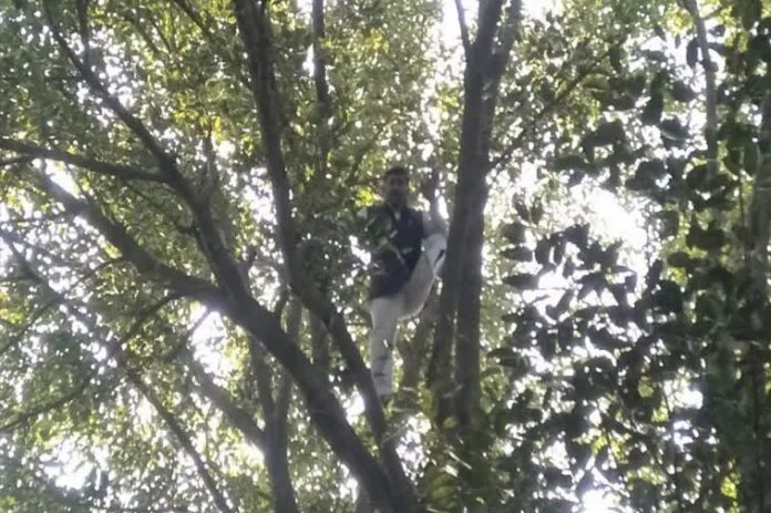 रुड़की। हरिद्वार के चकबंदी विभाग में कथित धांधली के मामलों में कार्रवाई नहीं होने पर एक भाजपा नेता आत्मदाह करने चकबंदी तहसील कार्यालय पहुंच गया। लेकिन वहां पुलिस को तैनात देख भाजपा नेता जगजीवन राम पेड़ पर चढ़ गया। जानकारी के मुताबिक भाजपा नेता के पास एक बैग भी था। हालांकि, थोड़ी देर बाद अधिकारियों के आश्वासन पर शख्स पेड़ से नीचे उतर गया।