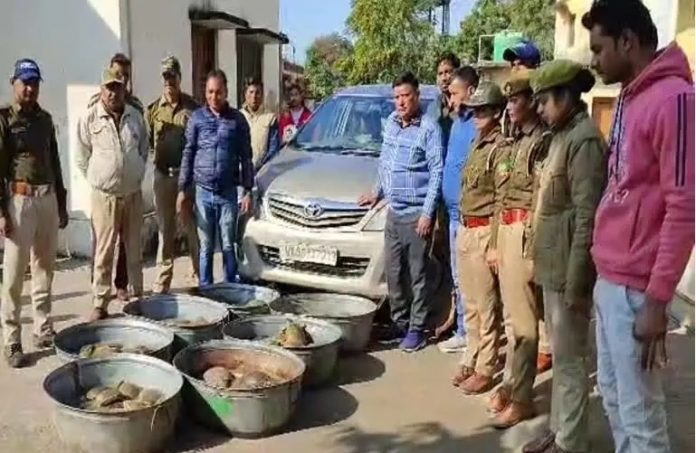 खटीमा। उधम सिंह नगर के खटीमा में कस्टम विभाग की टीम ने एक इनोवा कार से 173 जिंदा कछुओं को पकड़कर खटीमा वन विभाग के हवाले किया है। खटीमा वन विभाग ने अज्ञात तस्करों के खिलाफ मुकदमा दर्ज कर कछुओं को नानक सागर में छोड़ने की न्यायालय से अनुमति मांगी है।