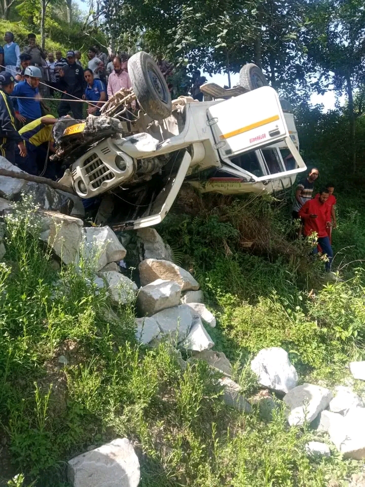 उत्तरकाशी। गुरुवार को बड़कोट नगाण गांव के पास एक वाहन दुर्घटना में एक व्यक्ति की मौके पर ही मौत हो गई जबकि 3 लोग घायल हो गए। घटना की सूचना पर गांव के लोगों ने रेस्क्यू अभियान चलाया कुछ समय बाद पुलिस टीम मौके पर पहुंची। हादसे के समय वाहन मे 5 लोग सवार थे जिसमें 01 की घटना स्थान पर ही मृत्यु हुयी है तथा 03 व्यक्ति घायल हुये है जिन्हें 108 की मदद से उपचार प्राथमिक स्वास्थ्य केन्द्र बड़कोट लाया गया है उक्त वाहन मे सभी व्यक्ति स्थानीय सवार थे। स्यालब से बड़कोट आ रही मैक्स संख्या यूके 075-5418 नगाण गांव के पास अनियंत्रित होकर के सड़क से नीचे जा गिरी जिसमें जय वीर लाल उम्र 55 वर्ष की मौके पर ही मौत हो गई , जबकि प्रह्लाद रावत उम्र 55, विनोद पंवार उम्र 40और सुनील चौहान 40 वर्ष घायल हो गए हैं घ् तीनों घायलों को सीएचसी पर कोर्ट में भर्ती कराया गया।