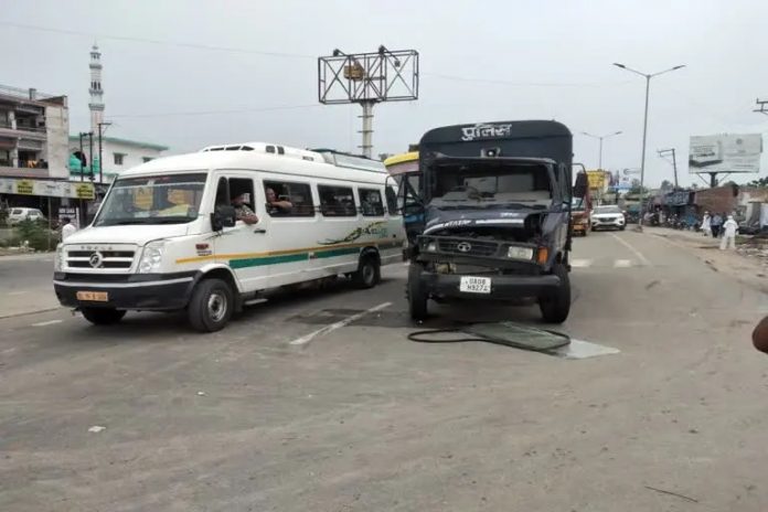 हरिद्वार। बहादराबाद थाना क्षेत्र में गुरुवार दोपहर उस समय हाईवे पर अफरा तफरी मच गई। जब रुड़की की ओर से आ रहे कैदियों से भरे दो वाहनों की जोरदार टक्कर हो गई। इस टक्कर में पीछे चल रहा वाहन बुरी तरह से क्षतिग्रस्त हो गया। दुर्घटना के बाद वाहन में सवार जेल कर्मियों के भी होश उड़ गए। हालांकि, इस दुर्घटना में किसी को नुकसान नहीं हुआ। मौके पर पहुंची बहादराबाद पुलिस ने दो अन्य वाहन बुलाकर कैदियों को सुरक्षित पेशी के लिए रोशनाबाद भेजा।