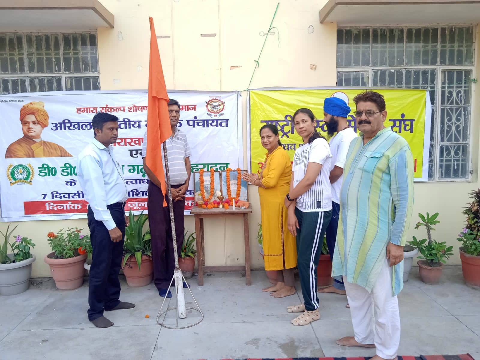 देहरादून , अखिल भारतीय ग्राहक पंचायत एवं डीडी कॉलेज के संयुक्त तत्वाधान में योग प्रशिक्षण शिविर का आयोजन राष्ट्रीय स्वयंसेवक संघ माधव शाखा राजकीय इंटर कॉलेज खुडबुडा देहरादून में किया गया। बच्चों ने विभिन्न असान सीखे और स्वास्थ्य लाभ के गुर जाने। शिविर के पांचवे दिन का शुभारंभ समाजसेवी एवं आरोग्य भारती की प्रांतीय कार्यकारिणी सदस्य श्रीमती मीनाक्षी गोयल जी व योगाचार्य सुमन चौहान और शाखा कार्यवाह श्री वीरेंद्र गोयल जी ने संयुक्त रूप से दीप प्रज्ज्वलित कर किया। इस अवसर पर डीडी कॉलेज के योगाचार्य हरमिंदर जी, व योगाचार्य श्रीमती सुमन चौहान जी , के द्वारा योग शिविर में बच्चों को प्राणायाम, नौकासन, हलासन, सर्वांगासन,वक्रासन ,उष्ट्रासन,धनुरासन, शलभासन , पद्मासन,भुजंगासन,पर्वतासन