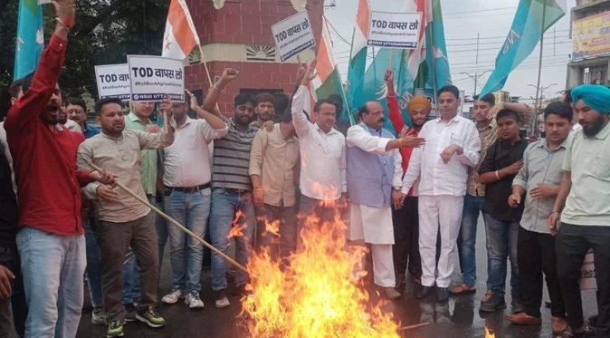 देहरादून। शनिवार को प्रदेश की राजधानीं देहरादून में एसएफआई छात्र संगठन के सदस्य अग्निपथ योजना के विरोध में उतरे। अग्निपथ योजना वापस लेने की मांग को  लेकर छात्रों ने  गांधी पार्क गेट के समक्ष सरकार के खिलाफ विरोध प्रदर्शन किया। उधर हल्द्वानी में अग्निपथ योजना का विरोध कर रहे युवकों पर हुए लाठीचार्ज को लेकर यूथ कांग्रेस के प्रदेश अध्य्क्ष सुमित्तर भुल्लर ने पत्रकारवार्ता की। हल्द्वानी के एमबीपीजी कॉलेज गेट के बाहर अग्नीपथ योजना के विरोध में एनएसयूआई कार्यकर्ताओं ने भाजपा सरकार का पुतला फूंका। उधर टनकपुर के पीलीभीत चुगी में भी युवाओं ने धरना प्रदर्शन किया। उत्तराखंड के अलग-अलग जिलों में अग्निपथ योजना को लेकर विरोध जारी है। देहरादून, हरिद्वार और हल्द्वानी खासतौर पर युवा विरोध प्रदर्शन कर रहे हैं। वहीं अब कांग्रेस भी मुद्दे को लेकर विरोध प्रदर्शन करने उतर गई है। पार्टी ने शुक्रवार को योजना का विरोध कर रहे युवाओं पर हल्द्वानी में लाठीचार्ज किए जाने को लेकर सरकार का पुतला फूंका। देशभर में अग्निपथ के विरोध में युवाओं के विरोध को देखते हुए रुड़की और देहात में भी पुलिस प्रशासन अलर्ट हो गया है। एसएसपी की ओर से पुलिस को सतर्कता बढ़ाने के निर्देश दिए गए हैं। साथ ही रुड़की और देहात में सभी कोतवाली व थाना प्रभारियों से अपने-अपने क्षेत्र में आने वाले कोचिंग सेंटरों की सूचना मांगी गई है।