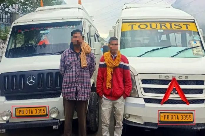 चमोली। चारधाम यात्रा के शुरू होते ही अपराध करने वाले अपराध के नये-नये तरीकों से सरकार को चूना लगाने के पैंतरे अपना रहे हैं। ऐसे ही चमोली में पुलिस ने एक ही पंजीकरण नंबर पर यात्रा मार्ग पर संचालित दो वाहनों को पकड़ा है।पुलिस ने दोनों आरोपियों के खिलाफ मुकदमा दर्ज कर लिया है और इस प्रकार के संचालित अन्य वाहनों की जानकारी जुटाई जा रही है।