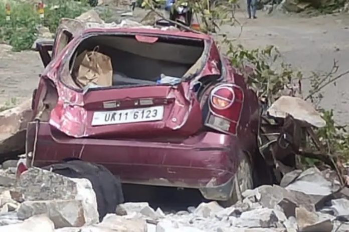 कार के ऊपर गिरी चट्टान, दंपति की दर्दनाक मौत