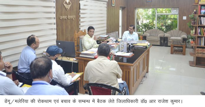 देहरादून। जिलाधिकारी डॉ. आर राजेश कुमार ने शिविर कार्यालय में डेंगू व मलेरिया की प्रभावी रोकथाम एवं बचाव के सम्बन्ध में बैठक लेते हुए संबंधित विभागों के अधिकारियों को आवश्यक दिशा-निर्देश दिए।