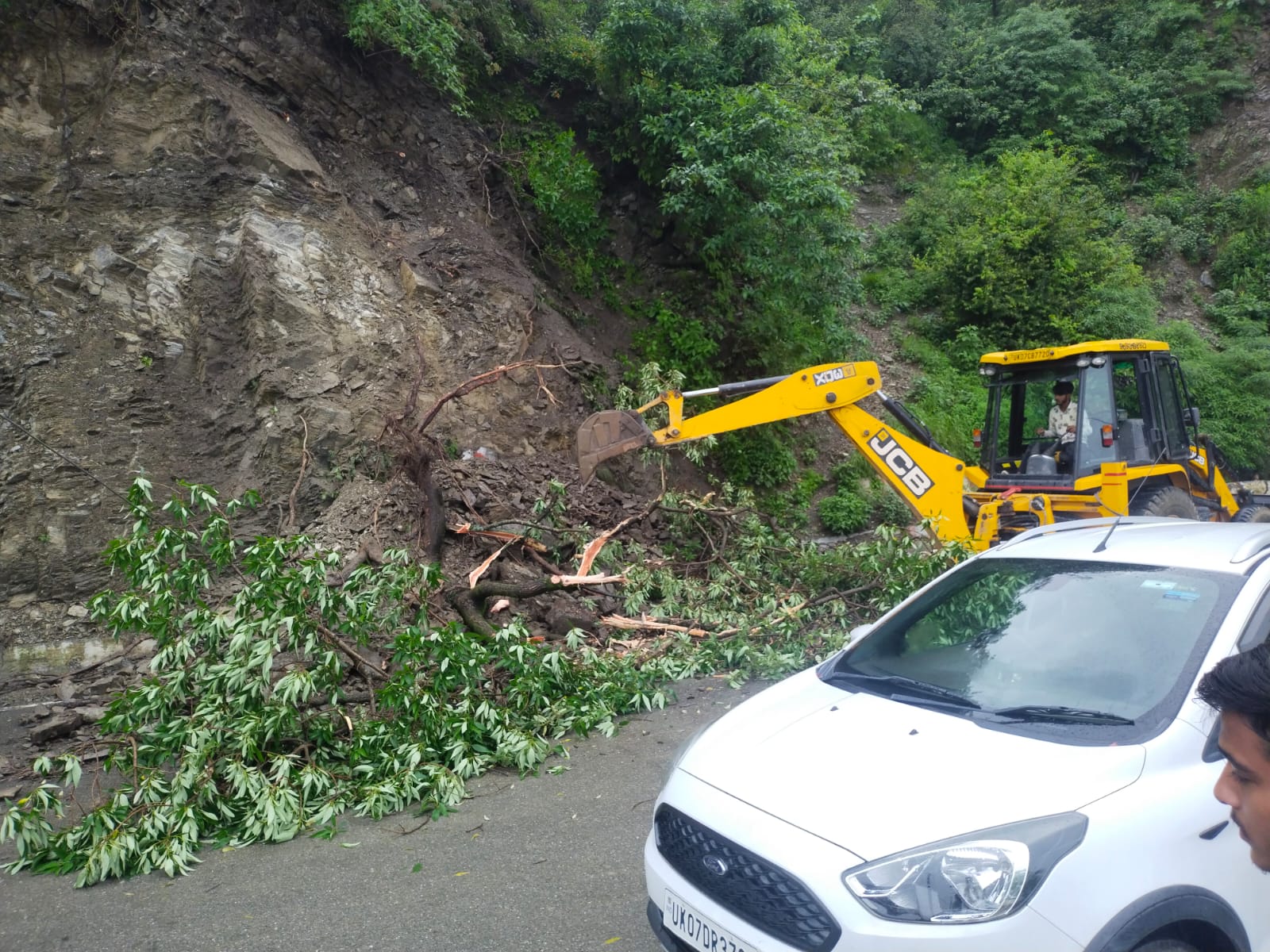मसूरी। लगातार हो रही भारी बारिश के कारण मसूरी देहरादून मार्ग पर गलोगी धार के पास मलवा और पेड़ गिरने से यातायात बाधित रहा। इस दौरान वाहनों की लंबी कतार लग गई। जिस पर मौके पर मौजूद जेसीबी ने शीघ्र मलवा व पेड़ हटाकर यातायात सामान्य किया।