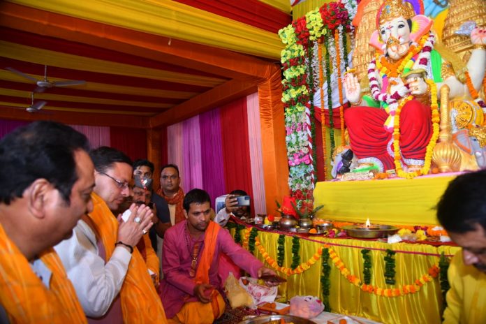 मुख्यमंत्री पुष्कर सिंह धामी ने गुरुद्वारा कालोनी, क्लेमेंटाउन स्थित रघुनाथ मंदिर में आयोजित गणेश महोत्सव में प्रतिभाग किया। भारी बारिश के बीच 12 वें गणेश महोत्सव में सम्मिलित होकर मुख्यमंत्री ने गणेश भगवान की पूजाअर्चना कर प्रदेश की खुशहाली की प्रार्थना की। भगवान श्री गणेश जी के प्रति अपने श्रद्धा भक्ति के भाव को लेकर मुख्यमंत्री श्री पुष्कर धामी तेज मूसलाधार बारिश के बावजूद भी गणेश महोत्सव कार्यक्रम में पहुंचे। मुख्यमंत्री ने भगवान श्री गणेश का आशीर्वाद भी लिया। मुख्यमंत्री ने कहा कि भारत देश उत्सवों का देश है। उत्सव समाज को जीवंत बनाते हैं। भगवान गणेश हम सभी के जीवन में सुख समृद्धि लाएं। मुख्यमंत्री श्री पुष्कर सिंह धामी ने गणेश महोत्सव के अवसर में 50 लाख की धनराशि देने की घोषणा की और कहा कि इस धनराशि से हॉल बनाया जाएगा ताकि गणेश महोत्सव आने वाले समय में और धूमधाम से मनाया जाए। मुख्यमंत्री ने कहा कि आज भारी बारिश में गणेश महोत्सव में इतनी संख्या में लोग आए हैं, ये उनकी श्रद्धा को बताता है। इतना भव्य गणेश महोत्सव का आयोजन किया गया है। इस अवसर पर विधायक विनोद चमोली, मेयर देहरादून सुनील उनियाल गामा, अध्यक्ष, राज्य वन विकास निगम कैलाश गहतोड़ी आदि गणमान्य उपस्थित थे।