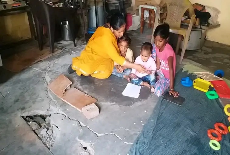 शौचालय के गड्ढे के ऊपर पढ़ाई करने को मजबूर नौनिहाल