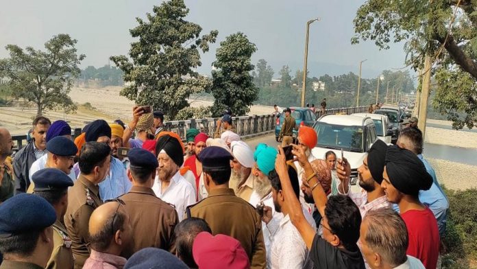 देहरादून। मंगलवार सुबह हरिद्वार के गुरुद्वारा ज्ञान गोदड़ी जा रहे सिख जत्थों को हिमाचल बॉर्डर पर रोक दिया गया है। इसे लेकर कुल्हाल चेक पोस्ट पर भारी संख्या में पुलिस बल तैनात किया गया है। पंजाब से सिख जत्घ्थे मंगलवार की सुबह पांवटा साहिब पहुंच गए थे। जिन्हे कुल्हाल चैक पोस्ट पर रोक दिया गया। इसके लिए मौके पर भारी पुलिस बल तैनात था। जत्थे पांवटा साहिब से जैसे ही उत्तराखंड में प्रवेश करने लगे तो एसडीएम विनोद कुमार और पुलिस अधिकारियों ने उन्हें पुल पर ही रोक दिया। एसडीएम विनोद कुमार, एसपी देहात कमलेश उपाध्याय, सीओ संदीप नेगी, कोतवाल शंकर सिंह बिष्ट जत्थे में शामिल व्यक्तियों से वार्ता कर रहे हैं। किसी को भी उत्तराखंड में प्रवेश नहीं करने दिया जा रहा है।हिमाचल बार्डर के पुल पर जत्थों को रोककर पुलिस अधिकारी उनसे बात कर वापस जाने को कह रहे हैं। हरिद्वार में लंबे समय से गुरुद्वारा ज्ञानगोदड़ी विवाद चल रहा है। जिसको लेकर हर साल पंजाब, हरियाणा व हिमाचल प्रदेश से कई जत्थे हरिद्वार जाने की कोशिश करते हैं।