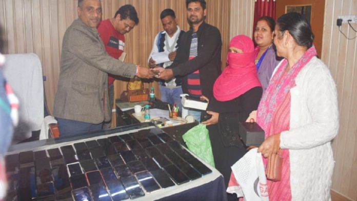 काशीपुर। जिले के विभिन्न स्थानों से गुमशुदा लाखों की कीमत के मोबाइलों को एसओजी काशीपुर की टीम ने कड़ी मशक्कत के बाद बरामद कर लिया। जिनके मोबाइल बरामद हुए हैं। उन्हें वापस कर दिए गए हैं। मोबाइल वापस पाकर लोगों के चेहरों पर खुशी फैल गई। बता दें कि ऊधम सिंह नगर जिले के विभिन्न थाना और चैकी क्षेत्रों से गुमशुदा मोबाइल फोनों की बरामदगी के लिए एसओजी कार्यालय सक्रिय रहता है। लापता मोबाइल फोनों की बरामदगी के लिए एसओजी टीम समय समय पर निगरानी बनाए रखी थी।पुलिस अधीक्षक काशीपुर अभय सिंह, सीओ वंदना वर्मा और एसओजी प्रभारी ऊधम सिंह नगर द्वारा गुमशुदा मोबाइलों को सर्विलांस पर लगाकर लगातार निगरानी की गयी। एसएसपी मंजूनाथ टीसी ने बुधवार को काशीपुर पहुंचकर मामले का खुलासा करते हुए बताया कि एसओजी काशीपुर की टीम ने उत्तराखण्ड, उत्तर-प्रदेश, दिल्ली समेत अन्य राज्यों से कुल 140 गुमशुदा मोबाइल फोन को बरामद किया है।