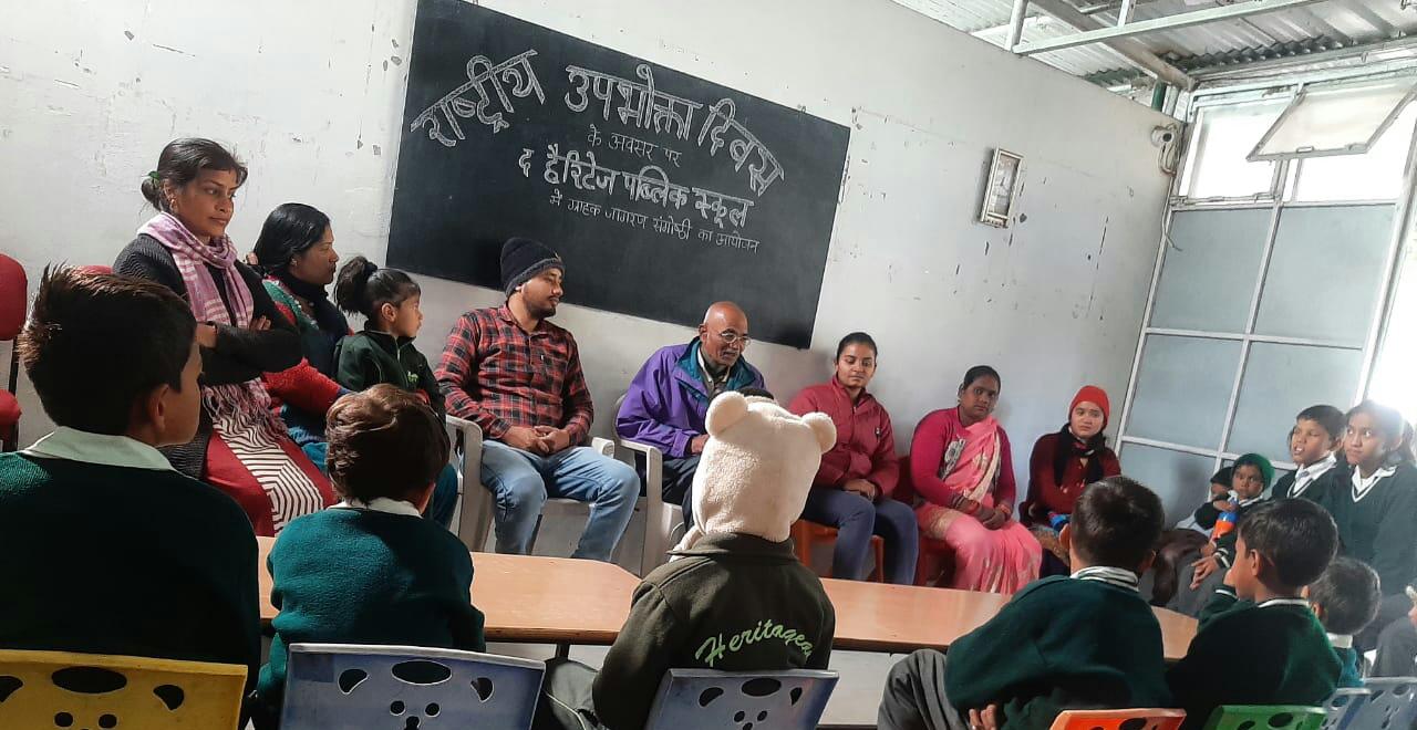 नकरौंदा डोईवाला देहरादून/राष्ट्रीय उपभोक्ता दिवस के अवसर पर अखिल भारतीय ग्राहक पंचायत उत्तराखंड द्वारा द हेरिटेज पब्लिक स्कूल नकरौंदा में ” संवाद” कार्यक्रम का आयोजन किया गया ! इस कार्यक्रम में विद्यार्थियों और अभिभावकों ने सहभागिता की! संवाद कार्यक्रम में प्रांत वरिष्ठ उपाध्यक्ष श्रीमान राजीव सिरोही जी ने छात्रों और अभिभावकों से संवाद कर ग्राहकों के अधिकार, धोखाधड़ी से बचाव, साइबर क्राइम, जागरूक ग्राहक, एवं बाल सुरक्षा विषयों पर प्रकाश डाला! छात्रों ने भी अपनी जिज्ञासाओं का समाधान प्राप्त किया! इस अवसर पर श्री सिरोही जी ने छात्रों और अभिभावकों को को हर खरीदी पर बिल लेने का संकल्प दिलाया! इस अवसर पर प्रांतीय संगठन मंत्री हरिशंकर सिंह एडवोकेट ने कहा कि अखिल भारतीय ग्राहक पंचायत द्वारा उपभोक्ताओं की मदद के लिए नकरौंदा में ग्राहक मार्गदर्शन भी खोला जा रहा है ,जिसमें ग्राहकों की समस्याओं का मार्गदर्शन किया जाएगा,