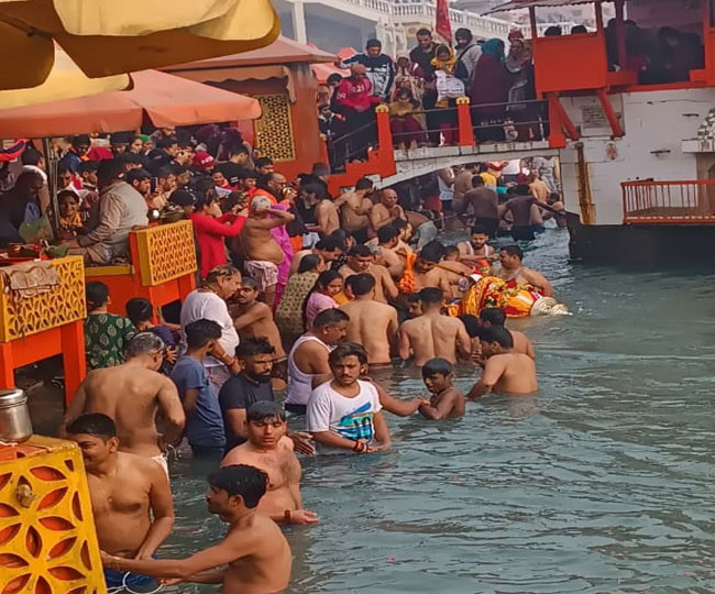 हरिद्वार। धर्मनगरी हरिद्वार में मकर संक्रांति पर श्रद्धालुओं ने गंगा में आस्था की डुबकी लगाई। सुबह तड़के से ही बड़ी संख्या में श्रद्धालु गंगा घाटों पर पहुंचने लगे। श्रद्धालुओं ने पूजा अर्चना कर, दान पुण्य किया। वहीं मकर संक्रांति पर जगह-जगह धार्मिक कार्यक्रमों का आयोजन किया जा रहा है। कई जगह खिचड़ी का प्रसाद वितरण किया जा रहा है। कड़ाके की ठंड भी श्रद्धालुओं की आस्था को डिगा नहीं सकी और मानो श्रद्धा भाव देखकर सर्दी ने खुद ही चुप्पी साध ली हो। श्रद्धालु ठंड की परवाह किए बगैर गंगा में डुबकी लगाते दिखे।गौर हो कि साल का पहला बड़ा गंगा स्नान 14 जनवरी को मकर संक्रांति का है। इस स्नान पर्व का काफी महत्व है, क्योंकि मकर संक्रांति के पर्व के दिन सूर्य मकर राशि में प्रवेश करते हैं। इसी के साथ ही सूर्य दक्षिणायन से उत्तरायण भी हो जाते हैं। इसलिए मकर संक्रांति के स्नान को खास माना जाता है। हरिद्वार में मकर सक्रांति पर गंगा में स्नान करने वालों की भीड़ उमड़ रही है। देशभर से श्रद्धालु आकर यहां आस्था की डुबकी लगा रहे हैं। मान्यता है कि मकर संक्रांति के दिन गंगा स्नान करने के उपरांत तिल और खिचड़ी के साथ वस्त्रों का दान करने से पुण्य फल की प्राप्ति होती है।
