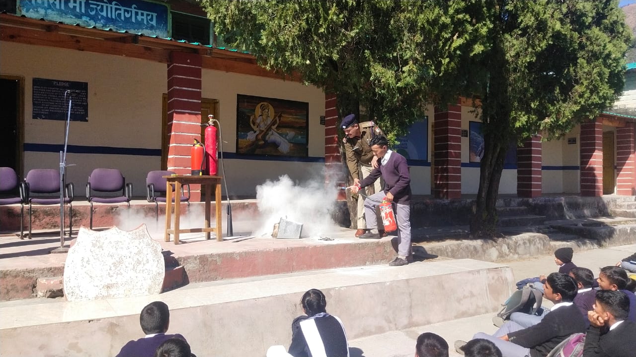 पुलिस अधीक्षक चमोली प्रमेन्द्र डोबाल महोदय के आदेशानुसार फायर स्टेशन गोपेश्वर व फायर यूनिट गैरसैंण द्वारा क्रमश: श्री 1008 गीतास्वामी राजकीय इंटर कॉलेज गोपेश्वर व राजकीय प्राथमिक विद्यालय गैरसैंण में फायर एक्सटिंग्विशर व उपकरणों के संचालन के सम्बन्ध में जागरूकता कार्यक्रम का आयोजन किया गया, उक्त जागरूकता कार्यक्रम में छात्रों व शिक्षक स्टाफ को अग्नि सुरक्षा विषय पर जानकारी व उपकरणों के संचालन का अभ्यास कराने के साथ आग से बचाव एवं सावधानियों के बारे में जानकारी साझा की गयी । इस दौरान विद्यालय शिक्षण स्टाफ व समस्त छात्र-छात्राएं व फायर स्टाफ के कर्मी मौजूद रहे। गोपेश्वर मे प्रभारी अग्निशमन अधिकारी धीरज सिंह तड़ियाल व गैरसैंण में लीडिंग फायरमैन राजीव राठौर द्वारा अभ्यास करवाया गया। राजकीय इंटर कॉलेज गोपेश्वर में लगभग 400 से अधिक छात्र-छात्राओं द्वारा प्रतिभाग किया गया। जनपद फायर सर्विस द्वारा लगातार इस प्रकार से विभिन्न स्कूलों-कालेज, संस्थाओं, प्रतिष्ठानों में जाकर अग्नि सुरक्षा के संबन्ध में जागरूक किया जा रहा है, ताकि प्राथमिक स्तर पर किसी भी विपरीत परिस्थियों में अपरिहार्य घटना को घटने से रोका जा सकें।