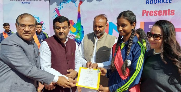रुड़की।मेयर गौरव गोयल द्वारा शेफील्ड़ स्कूल रूडकी में आयोजित ”अनुभूति” वर्षीकोत्सव कार्यक्रम का दीप प्रज्वालित कर शुभारंभ किया गया।स्कूल में मुख्य अतिथि के रुप में पहुंचे मेयर गौरव गोयल ने स्कूली बच्चों के साथ शिक्षा,संस्कार एवं रोजगार समेत अनेक विषयों पर संवाद करते हुए सभी विद्यार्थियों को लक्ष्य प्राप्त कर आगे बढ़ने के लिए प्रेरित किया। कहा कि शिक्षित व्यक्ति के द्वारा ही शिक्षित समाज एवं उन्नत राष्ट्र की कल्पना की जा सकती है।सभी विद्यार्थीयों को मन लगाकर शिक्षा ग्रहण करने एवं तरक्की की राह में आगे बढ़ने का आह्वान करते हुए ,उन्होंने कहा कि यदि बच्चे पढ़ लिख कर आगे बढ़ेंगे तो राष्ट्र भी उन्नत होगा।
