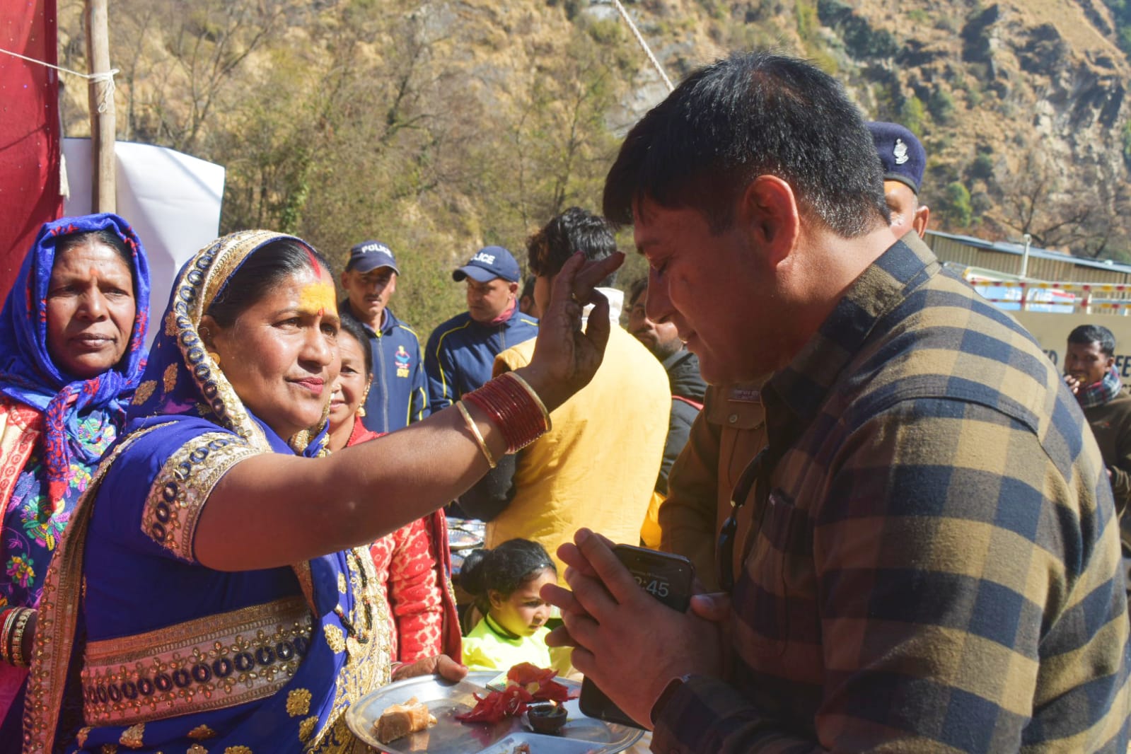 जीवन और संस्कृति के हर रंग में शामिल रही पुलिस आयोजन के दौरान सर्वप्रथम ग्राम प्रधान ल्यारी अनूप सिंह व महिला मंगल दल उर्गम के द्वारा पुलिस अधीक्षक महोदय तथा अन्य पुलिस अधिकारियों को फूल माला पहनाकर व तिलक लगाकर स्वागत किया गया स्थानीय नागरिकों व दूरस्थ क्षेत्रों से आये शिवभक्तों के द्वारा उत्साह के साथ बढ़-चढ़कर भण्डारे में हिस्सा लिया गया। पुलिस द्वारा आयोजित भण्डारे में पुलिस अधीक्षक महोदय व पुलिस उपाधीक्षक महोदय द्वारा स्वयं शिवभक्तों के लिए भोजन परोसा गया। इस दौरान पुलिस द्वारा उपस्थित सभी स्थानीय लोगों को नशे के दुष्प्रभाव, महिला संबंधी अपराधों, साइबर अपराध, उत्तराखण्ड़ पुलिस एप गौरा शाक्ति एप व रेगुलर पुलिस की कार्यप्रणाली के संबंध में जानकारी दी गई साथ ही साइबर क्राइम हेल्पलाइन नम्बर 1930 आपातकालीन नम्बर डायल 112, महिला हेल्पलाइन नम्बर 1090 के संबंध में विस्तृत जानकारी देते हुए जागरूक किया गया।