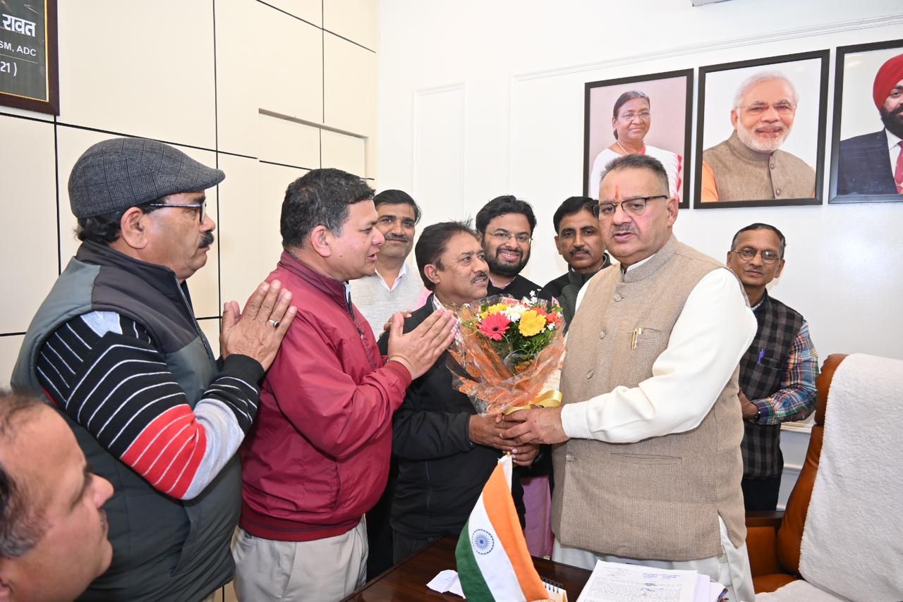 मंत्री गणेश जोशी से भारतीय मजदूर संघ (MES) सगठन के पाधिकारियों ने की मुलाकात।