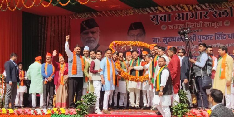 हल्द्वानी। नकल विरोधी कानून को लेकर भारतीय जनता युवा मोर्चा ने आयोजित आभार रैली में मुख्यमंत्री पुष्कर सिंह धामी का भव्य स्वागत किया गया। युवा मोर्चा प्रदेश अध्यक्ष शशांक रावत ने उनका स्वागत किया। आभार रैली को संबोधित करते हुए सीएम पुष्कर सिंह धामी ने कहा कि यह आभार रैली में मेरा नहीं बल्कि आपका आभार है। आपके द्वारा दी गई शक्ति व समर्थन के कारण ही यह संभव हुआ है। धामी ने कहा कि में भी गरीब परिवार से हूं इसलिए इस दर्द को जनता हूं। किसी गरीब परिवार का युवा प्रतियोगी कितनी मेहनत करता है।