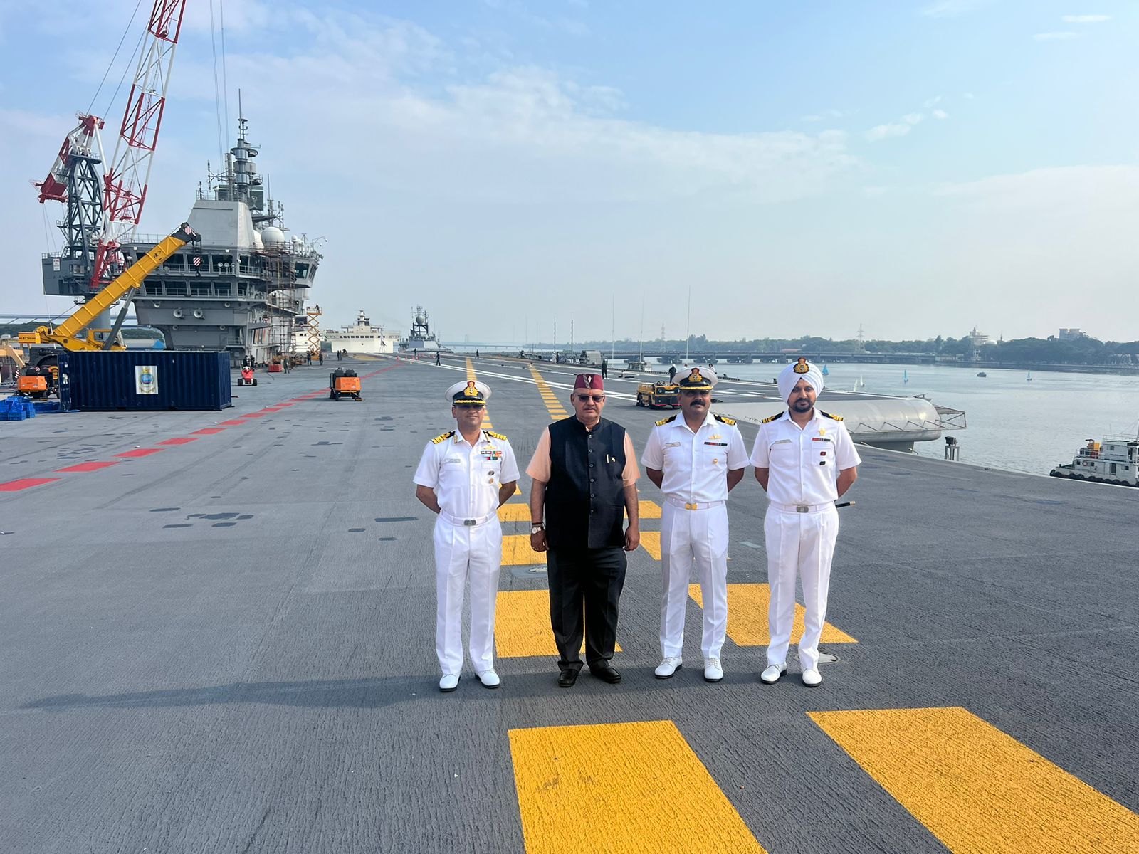 कोच्चि, 01 मार्च 2023। केरल दौरे के तीसरे दिन सूबे के कृषि मंत्री गणेश जोशी ने आज कोच्चि के कोचीन शिपयार्ड पहुंचे। जहां उन्होंने भारत द्वारा निर्मित देश का पहला स्वदेशी विमानवाहक पोत अब तक का सबसे बड़ा जहाज आईएनएस विक्रांत का निरीक्षण कर जहाज का अवलोकन किया। इस मौके कृषि मंत्री गणेश जोशी के साथ नौसेना के तमाम वरिष्ठ अधिकारी भी मौजूद रहे। मंत्री गणेश जोशी ने आईएनएस विक्रांत की भूरी भूरी प्रशंसा की और भारतीय नौसेना के अधिकारियों को बधाई एवं शुभकामनाएं भी दी।
