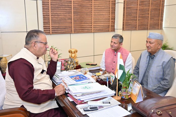 पद्मश्री से अलंकृत किसान प्रेम चंद शर्मा ने कृषि मंत्री गणेश जोशी से की शिष्टाचार भेंट।