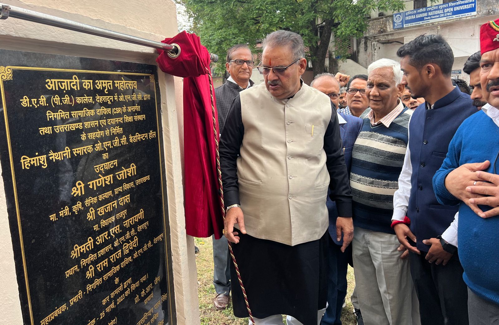 मंत्री गणेश जोशी में डीएवी पीजी कॉलेज में हिमांशु नैथानी स्मारक ओ०एन०जी०सी० बैडमिंटन हॉल का किया लोकार्पण।