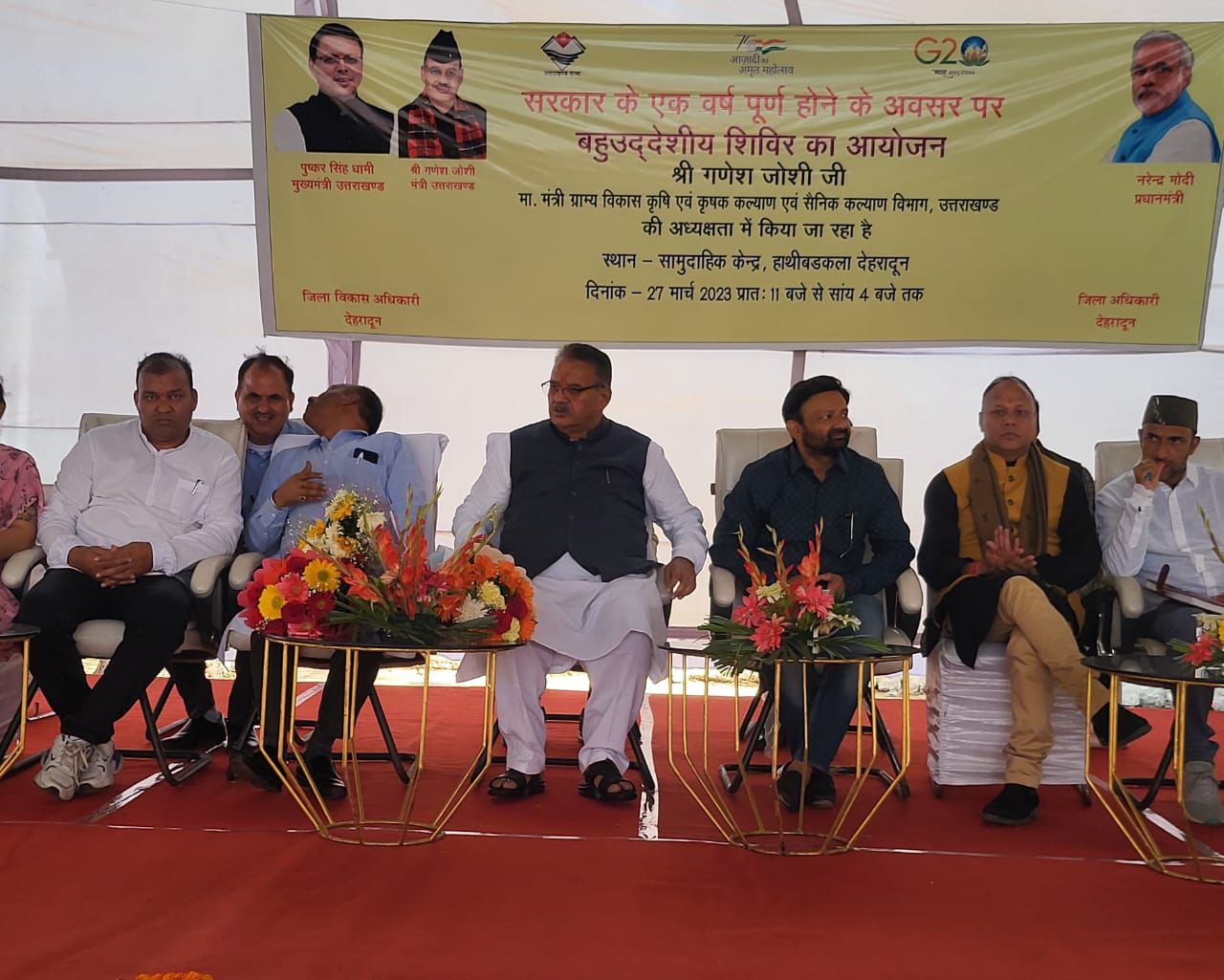 कैबिनेट मंत्री गणेश जोशी ने मसूरी विधानसभा क्षेत्रान्तर्गत देहरादून में राज्य सरकार के कार्यकाल का एक वर्ष पूर्ण होने पर आयोजित बहुउद्देशीय शिविर में किया प्रतिभाग।