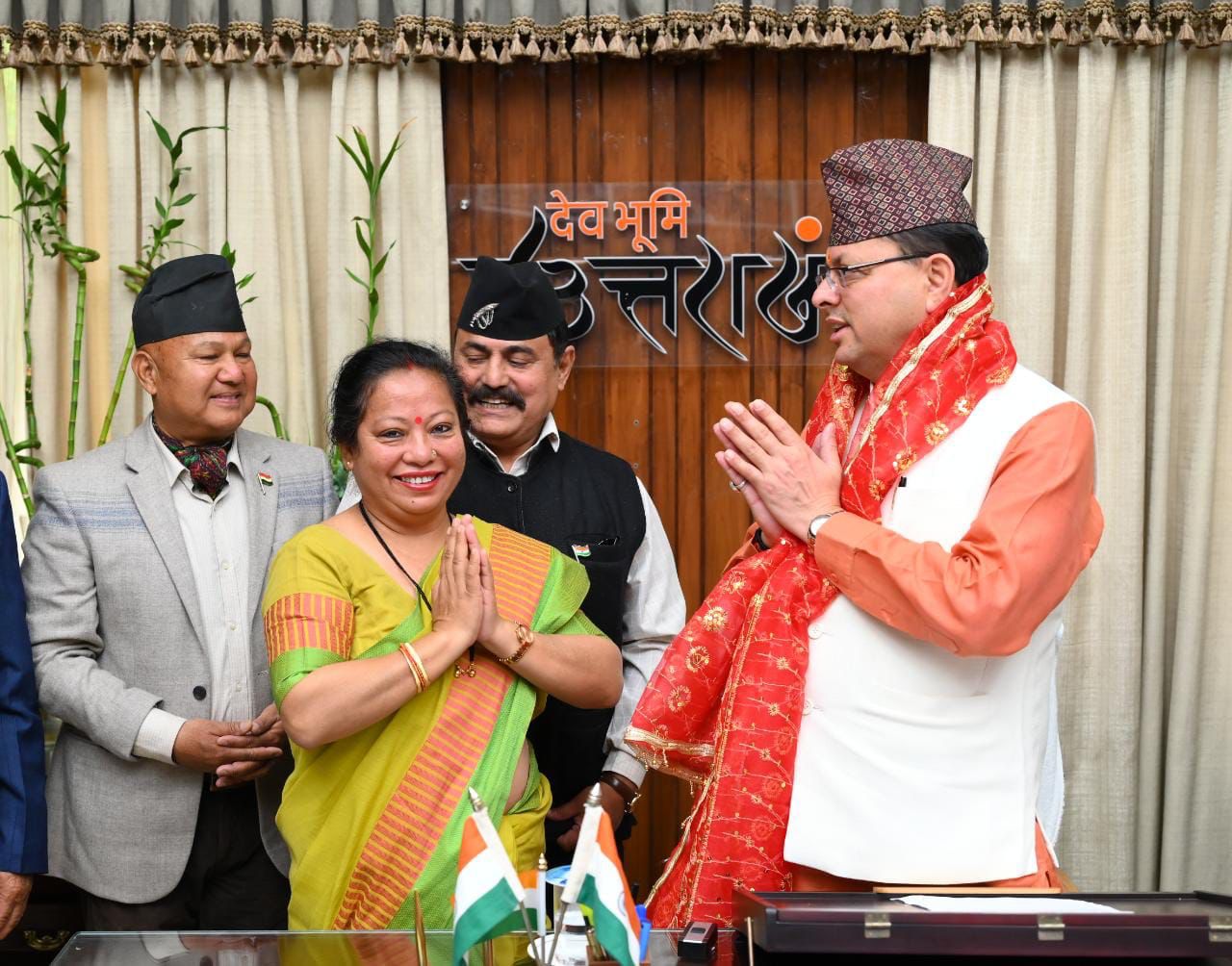 देहरादून- गोर्खाली सुधार सभा के अध्यक्ष पदम बहादुर थापा, भाजपा शहीद दुर्गामल्ल मण्डल की अध्यक्ष ज्योति कोटिया ने प्रदेश के मुख्यमंत्री पुष्कर सिंह धामी से मुकाकात की। इस अवसर पर उन्होंने मुख्यमंत्री से सरकार में गोरखा समुदाय के प्रतिनिधित्व की मांग की। इसके बाद इस प्रतिनिधिमंडल ने कैबिनेट मंत्री गणेश जोशी से भी भेट की।