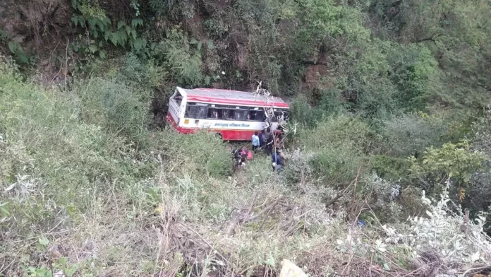 देहरादून। मसूरी देहरादून मार्ग पर रविवार दोपहर एक रोडवेज बस खाई में गिर गई, जिसमें 35 से अधिक लोग सवार थे। पुलिस के अनुसार दो लोगों की मौत हो गई है। पुलिस और आईटीबीपी के जवान सहित स्थानीय लोग खाई से घायलों को बाहर निकालने में जुटे हैं। तीन लोग गंभीर घायल है। जबिक 19 घायलों को देहरादून भेजा गया है। पुलिस ने मृतकों के शव का पंचनामा भरकर पीएम के लिए भेज दिया है।