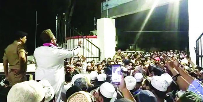 मौके पर पुलिस भी पहुंच गई, सिटीजिस्ट्रेट और नगर निगम की टीम भी आ गई। सिटी मजिस्ट्रेट ने भवन स्वामी से जमीन के कागज, निर्माण की अनुमति दिखाने के लिए कहा। कागजात नहीं दिखाने पर भवन सील कर दिया। इस कार्रवाई से नाराज एक पक्ष ने धार्मिक गुरु से अभद्रता का आरोप लगाते हुए पुलिस और प्रशासन के खिलाफ नारेबाजी करते हुए कोतवाली का घेराव कर दिया। आला पुलिस के अधिकारियों और धार्मिक गुरुओं के समझाने पर भी लोग नहीं माने। देर रात करीब दो बजे तहरीर पर मुकदमा दर्ज होने और आईजों के आश्वासन पर हंगामा शांत हुआ। इस मामले में देर रात आक्रोशित लोगों की तहरीर पर मनोज भट्ट के समेत 30 से 40 अज्ञात लोगों के खिलाफ मुकदमा दर्ज कर लिया गया। इधर इस मामले में आज अधिवक्ता जफर सिद्दीकी और सपा नेता हाजी अब्दुल मतीन सिद्दीकी कोतवाली पहुंचे। जहां उन्होंने पुलिस कार्यवाही पर असंतोष जाहिर किया। उनका कहना था कि इतना बड़ा मामला होने के बावजूद पुलिस ने हल्की धाराओं में मुकदमा दर्ज किया है। इतना ही नहीं अभी तक पुलिस किसी भी आरोपी को गिरफ्तार नहीं कर पाई है। उन्होंने पुलिस से आरोपियों की जल्द गिरफ्तारी की मांग की है। चंद लोगों की वजह से शहर में अराजकता बढ़ती जा रही है। इनके प्रति पुलिस का रवैया भी उदासीन रहा है। जिसके चलते असमाजिक तत्वों के हौंसले बुलंद होते जा रहे हैं। इसे पुलिस की नाकामी ही कहेंगे कि प्रशासनिक अधिकारियों के सामने ही धर्म गुरू को सरेआम थप्पड़ जड़ दिया जाता है, बावजूद इसके पुलिस और प्रशासन मूकदर्शक बना रहा। कहीं ऐसा न हो कि पुलिस प्रशासन की इसी लापरवाही के चलते किसी दिन शहर की फिजा बिगड़ जाए और हालात हाथ से निकल जाएं।