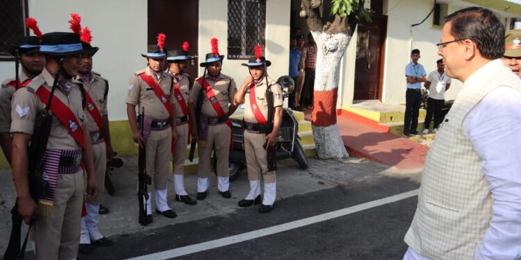रुद्रपुर। मुख्यमंत्री पुष्कर सिंह धामी को अपने बीच देख पुलिस कर्मियों का हौसला बढ़ गया। इस दौरान मुख्यमंत्री ने कर्मियों से मिल कर उनका हाल चाल जाना। बता दें कि दो दिवसीय दौरे पर सीएम खटीमा क्षेत्र में भ्रमण पर आए। सीएम के पंतनगर पहुंचने पर पुलिस कर्मियों ने उन्हें सलामी दी। इस मौके पर सीएम सलामी में ड्यूटी में लगे जवानों के बीच पहुंचे और उन्होंने जवानों से मिलकर उनका हाल चाल जाना। मुख्यमंत्री को अपने बीच देखकर जवानों का भी उत्साह बढ़ा तथा सलामी गार्ड में तैनात उपनिरीक्षक भूपेश पांडे के टर्न आउट एवम सलामी गार्ड की प्रशंशा की। पुलिस के मुताबिक अब तक एसआई भूपेश पांडे को 26 बार पारीतोषिक प्रदान किया जा चुका है।उप निरीक्षक भूपेश पांडे यहां पुलिस लाइन रुद्रपुर में तैनात हैं। राज्यपाल उत्तराखंड से 3 बार व मुख्यमंत्री उत्तराखंड द्वारा 6 बार इन्हें गार्ड ऑफ ऑनर तथा उच्च कोटि के अनुशासन एवं टर्नआउट के लिए पुरस्कृत किया जा चुका हैं। उत्तराखंड पुलिस और ऊधम सिंह नगर पुलिस की शान हैं। पुलिस लाइन में तैनात रहकर एसआई द्वारा अपने कार्यों का निर्वहन पूरी तन्मयता एवं कर्तव्य निष्ठा के साथ किया जाता है। इस मौके पर डीएम युगल किशोर पंत और एसएसपी डॉ मंजुनाथ टिसी समेत अन्य अधिकारी मौजूद थे।