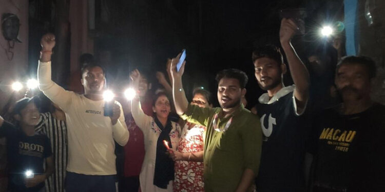 हल्द्वानी। उमस भारी गर्मी में हो रही रात में हो रही विद्युुत कटौती से राजपुरा की जनता सब्र का बांध टूट गया रात 1 बजे स्थानीय महिलाओं पुरुषों ने यूथ कांग्रेस प्रदेश उपाध्यक्ष हेमन्त साहू की अगवाई में सडक में उतारकर मोबाइल की लाईट जलाकर अनोखे अन्दाज में विद्युुत विभाग व राज्य सरकार के खिलाफ जोरदार प्रदर्शन करते हुऐ आक्रोश जाहिर किया।