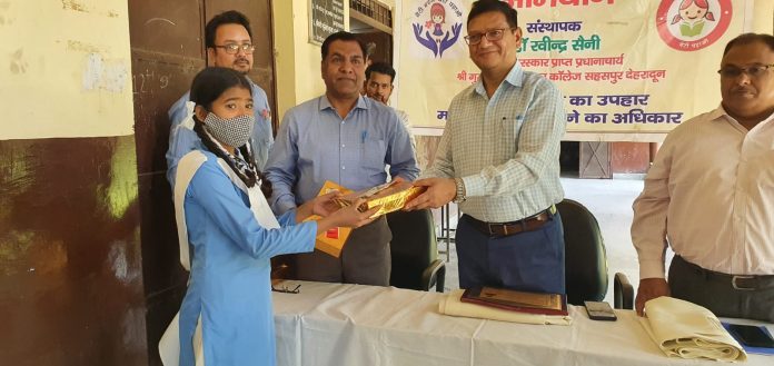 सहसपुर- श्री गुरु राम राय इंटर कॉलेज सहसपुर में आज प्रधानाचार्य डॉ रविंद्र सैनी द्वारा चलाए जा रहे बेटी बचाओ बेटी पढ़ाओ अभियान के तहत एक कार्यक्रम का आयोजन किया गया जिसमें जनपद देहरादून के मुख्य शिक्षा अधिकारी प्रदीप कुमार रावत जी मुख्य अतिथि की भूमिका में उपस्थित रहे। इस अवसर पर विद्यालय के प्रधानाचार्य ने मुख्य शिक्षा अधिकारी प्रदीप कुमार रावत जी को शॉल ओढ़ाकर और उनके ऊपर लिखी स्वरचित कविता भेंटकर स्वागत और सम्मान किया। मुख्य शिक्षा अधिकारी ने विद्यालय की लगभग 20 निर्धन छात्राओं को पाठ्य सामग्री वितरित की और विद्यालय के सभी छात्र छात्राओं से मुखातिब हुए। अपने उद्बोधन में विद्यालय में उन्होंने विद्यालय के प्रधानाचार्य डॉ रविंद्र सैनी की प्रशंसा करते हुए उनके इस अभियान को एक सराहनीय कार्य बताया।। उन्होंने कहा कि आज बेटियां आत्मनिर्भर होकर पूरे आत्मविश्वास के साथ आगे बढ़ रही हैं और हर क्षेत्र में ख्याति प्राप्त कर रही हैं। इस प्रकार के अभियानों ने बेटियों को और आगे बढ़ने हेतु प्रेरित किया है। इस अवसर पर उन्होंने विद्यालय के शिक्षकों के साथ भी चर्चा की, साथ ही कहा कि अधिकतर अशासकीय विद्यालयों में छात्रों की संख्या में कमी हो रही है तथापि इस विद्यालय में विद्यार्थियों की संख्या 1300 के लगभग है जोकि अत्यंत प्रसन्नता का विषय है ।यह प्रधानाचार्य की कार्यकुशलता एवं जन सहयोग प्राप्त करने की योग्यता का उदाहरण है। उनका अपने शिक्षकों के साथ व्यवहार उनके कुशल नेतृत्व का प्रमाण है । उन्होंने कहा कि मैं विद्यालय के हित में कार्य करने हेतु तत्पर रहूंगा । कार्यक्रम का संचालन विद्यालय के प्रवक्ता जयन्त कुमार सिंह ने किया। इस अवसर पर विकासनगर के खंड शिक्षा अधिकारी वी पी सिंह ,आलोक बिजल्वाण, सुरेंद्र मदान, दीपक कुमार, मुकेश कुमार, सत्यपाल चौहान, अलका ,हेमा,विभा,नफीसा, संजीदा,रूबी,अंशु, संजय गैरोला, कुलदीप जोशी, अर्चना, शिवानी, आशुतोष ,आभा, नौशाद, श्यामलाल, राजेश कुमार, दारा सिंह, रितु आदि उपस्थित रहे।