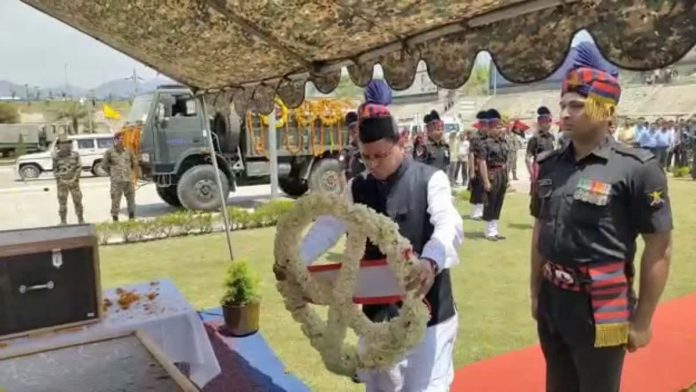 देहरादून। जम्मू कश्मीर के राजौरी सेक्टर में आतंकवादियों के खिलाफ सर्च ऑपरेशन के दौरान शहीद हुए उत्तराखंड और हिमाचल के दो जवानों के शव जौलीग्रांट एयरपोर्ट लाए गए हैं. एयरपोर्ट पर उत्तराखंड के मुख्यमंत्री पुष्कर सिंह धामी ने दोनों शहीदों को राजकीय सम्मान के साथ श्रद्धांजलि दी.