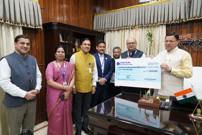 देहरादून। भारतीय स्टेट बैंक ने जोशीमठ के भू-धंसाव वाले क्षेत्र के विस्थापित लोगों के राहत व पूनर्वास के लिए मुख्यमंत्री कों दो करोड रूपये का चेक दिया।