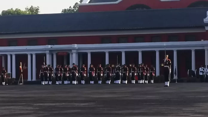 परेड से पहले परिसर में सेना और बाहर पुलिस की कड़ी सुरक्षा व्यवस्था की गई थी। अकादमी के ऐतिहासिक चेटवुड भवन के सामने ड्रिल स्क्वायर पर सुबह छह बजे परेड शुरू हुई। परेड के बाद पीपिंग सेरेमनी आयोजित की गई। इसके बाद देश और विदेश के 373 कैडेट्स अफसर बनकर अपनी सेनाओं की मुख्य धारा में जुड़ गए। इनमें 331 अफसर भारतीय सेना को मिले। भारतीय सैन्य अकादमी के एतिहासिक चेटवुड भवन के सामने ड्रिल स्क्वायर पर सुबह परेड हुई। 6 बजकर 47 मिनट एडवास कॉल के साथ ही छाती ताने देश के भावी कर्णधार असीम हिम्मत और हौसले के साथ कदम बढ़ाते परेड के लिए पहुंचे। परेड कमांडर मेहर बनर्जी ने ड्रिल स्क्वायर पर जगह ली।कैडेट्स ने शानदार मार्चपास्ट से दर्शक दीर्घा में बैठे हर शख्स को मंत्रमुग्ध किया। इधर, युवा सैन्य अधिकारी अंतिम पग भर रहे थे, तो आसमान से हेलीकाप्टरों के जरिए उन पर पुष्प वर्षा हो रही थी। परेड के बाद आयोजित होने वाली पीपिंग व ओथ सेरेमनी के बाद पासिंग आउट बैच के 373 जेंटलमैन कैडेट देश-विदेश की सेना में बतौर अफसर शामिल हो गए। इनमें 331 युवा सैन्य अधिकारी भारतीय थलसेना को मिले।
