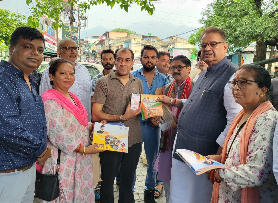 देहरादून, 23 जून। कैबिनेट मंत्री गणेश जोशी ने मसूरी विधानसभा क्षेत्र के बूथ संख्या 34 राजपुर में भाजपा के महाजनसंपर्क अभियान के अंतर्गत घर-घर संपर्क अभियान में मनोज टंडन, राजेश कुमार, संदीप गुप्ता, शिल्पा खन्ना, शाहिल, प्रीतपाल सिंह सेठी आदि व्यापारियों एवं विशिष्ट लोगो से मुलाकात कर उन्हें मोदी सरकार द्वारा 9 वर्षों में कराये गये मुख्य विकास कार्यों की पुस्तिका भेट की।