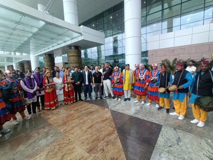 G-20 सम्मेलन हेतु प्रतिभाग करने पहुँचे ब्राजील से तीन प्रतिनिधिमंडल के सदस्यों का देवभूमि उत्तराखण्ड की लोक परंपराओं व पारंपरिक वाद्ययंत्र ढ़ोल-दमाऊ के साथ भव्य स्वागत किया गया