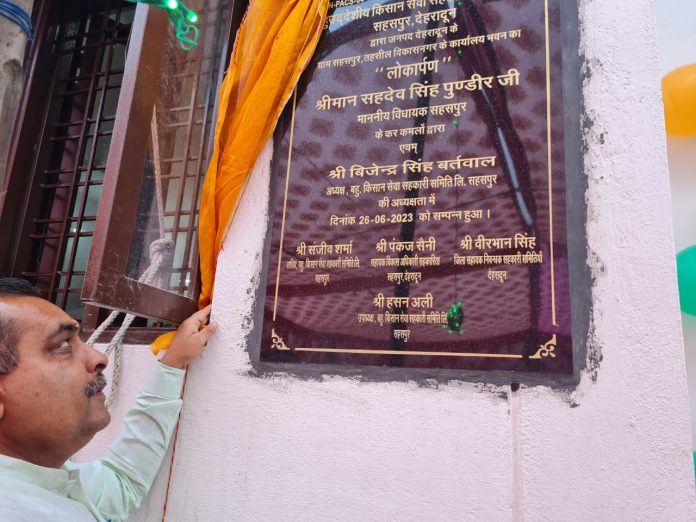 सहसपुर- विधायक सहदेव सिंह पुंडीर ने ग्राम सहसपुर में बहुद्देशीय किसान सेवा सहकारी समिति लि० के कार्यालय भवन का लोकार्पण किया।