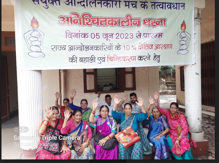 देहरादून। राज्य आंदोलनकारियों के लिये राज्याधीन सेवाओं में 10 प्रतिशत क्षैतिज आरक्षण की बहाली और चिन्हीकरण की प्रक्रिया दोबारा शुरू करने की माँग को लेकर संयुक्त मंच का धरना मंगलवार को तेईसवें दिवस भी जारी रहा।