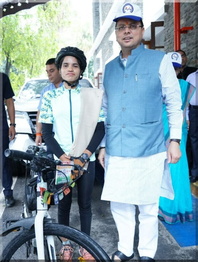 शनिवार को यहां मुख्यमंत्री पुष्कर सिंह धामी से मुख्यमंत्री कैम्प कार्यालय में साइकिलिस्ट आशा मालवीय ने भेंट की। मुख्यमंत्री पुष्कर सिंह धामी ने महिला सुरक्षा और महिला सशक्तिकरण के उद्देश्य से आशा मालवीय द्वारा साइकिल यात्रा के माध्यम से जागरूकता फैलाये जाने के प्रयासों की सराहना की। मुख्यमंत्री ने कहा कि यदि मनुष्य किसी लक्ष्य की प्राप्ति के लिए दृढ़ संकल्प होकर कार्य करता है, तो उसमें सफलता अवश्य मिलती है। उन्होंने आशा मालवीय के उज्ज्वल भविष्य की कामना की। मध्यप्रदेश के राजगढ़ जिले की आशा मालवीय महिला सुरक्षा और महिला सशत्तिफकरण के उद्देश्य से देशभर में साइकिल यात्रा के माध्यम से जागरूकता का कार्य कर रही हैं। उन्होंने कहा कि उनके द्वारा यात्रा की शुरूआज एक नवम्बर 2022 से मध्य प्रदेश की राजधानी भोपाल से की गई और यह यात्रा स्वतंत्रता दिवस के अवसर पर नई दिल्ली में सम्पन्न जायेगी। उन्होंने कहा कि इस यात्रा के दौरान भारत के 28 राज्यों में कुल 25 हजार कि.मी. की यात्रा तय की जायेगी। इस यात्रा के दौरान उनके द्वारा अभी तक 23 राज्यों में 19700 कि.मी. की दूरी तय की जा चुकी है। उनकी यात्रा का उत्तराखण्ड 24 वां राज्य है।