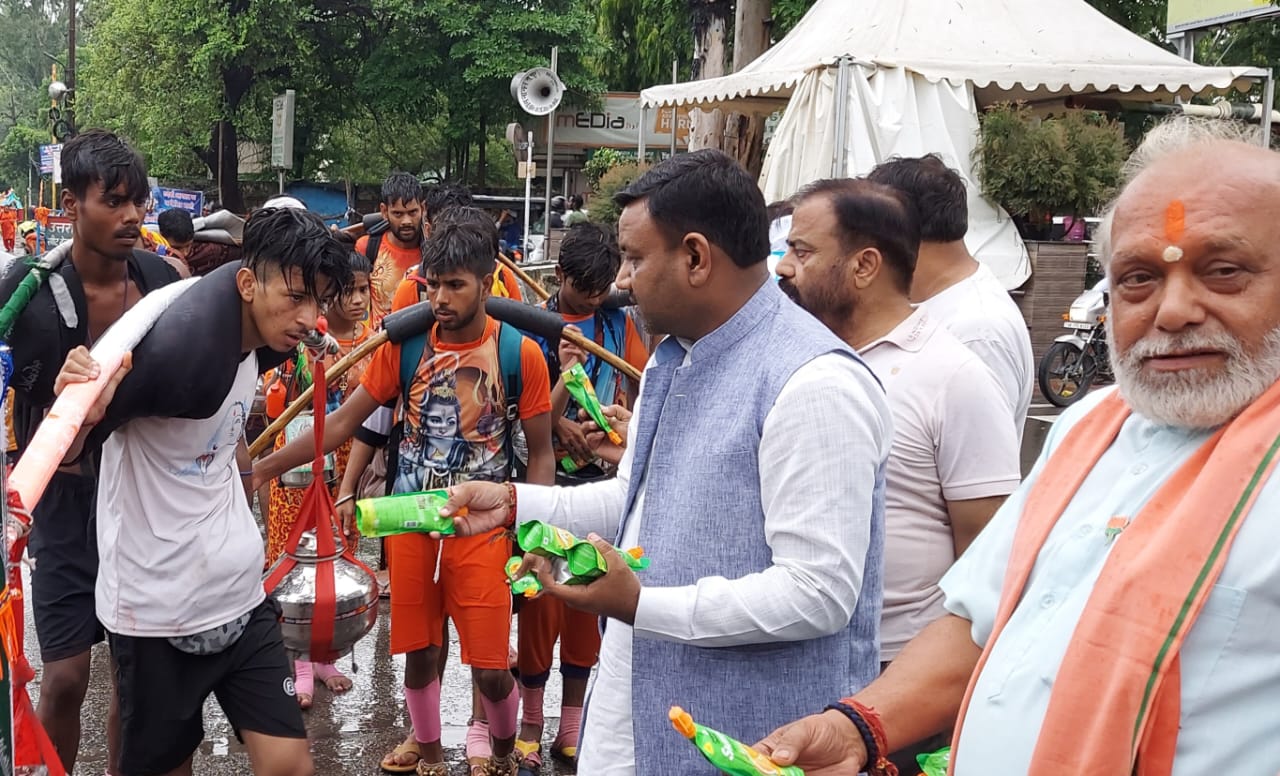 रुड़की।गणेशपुर पुल के समीप बड़ी संख्या में गंतव्यों की ओर हरिद्वार से पवित्र गंगाजल लेकर प्रस्थान कर रहे शिवभक्तों को मेयर गौरव गोयल द्वारा जूस व फ्रूटी वितरित की गई।मेयर गौरव गोयल ने कहा कि सभी को भक्ति व श्रद्धा भाव से कांवड़ियों की सेवा करनी चाहिए।शिव भक्तों की सेवा करने से शंकर भोले बहुत ही प्रसन्न होते हैं।उन्होंने कहा कि शिव की महिमा अपरंपार है और शिव ही सत्य है।इस अवसर पर रजनीश गुप्ता,निखिल सेठी,वरुणजैन उर्फ बंटी,अनूप शर्मा,अवनीश मोदी त्यागी,नवीन मेहंदीरत्ता,अविनाश त्यागी, नरेश सचदेवा,सार्थक गोयल,तुषार गोयल,इमरान देशभक्त,सुनील राणा, विनीत बिंदास आदि मौजूद रहे।
