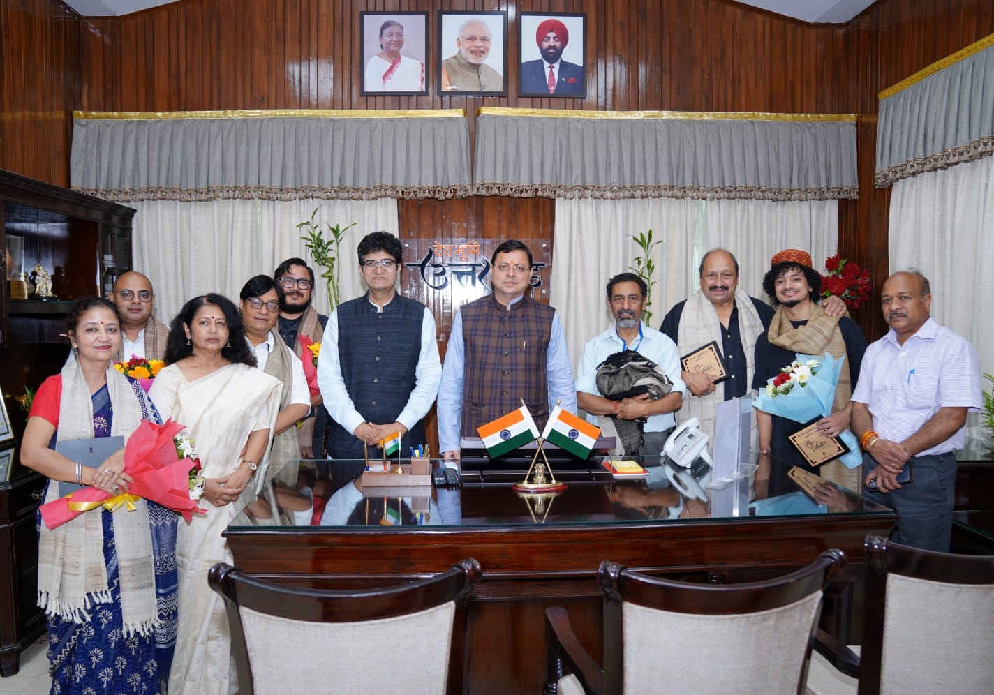 देहरादून-मुख्यमंत्री पुष्कर सिंह धामी से मुख्यमंत्री कैम्प कार्यालय में केन्द्रीय फिल्म प्रमाणन बोर्ड के अध्यक्ष एवं प्रसिद्ध गीतकार प्रसून जोशी ने भेंट कर देहरादून में सांस्कृतिक केंद्र शुरू करने के लिए मुख्यमंत्री का आभार व्यक्त किया। मुख्यमंत्री श्री धामी ने कहा कि उत्तराखण्ड का नैसर्गिक सौन्दर्य फिल्मकारों को आकर्षित कर रहा है। राज्य में फिल्मांकन के लिए राज्य सरकार की ओर से हर संभव सहयोग दिया जाएगा। फिल्म जगत से जुड़े लोगों के जो भी सुझाव प्राप्त होते हैं, उन सुझावों को पूरी गम्भीरता से लिया जाता है। इस अवसर पर कला एवं साहित्य क्षेत्र से जुड़े श्री सुधीर पाण्डे, श्रीमती शालिनी शाह, श्री प्रवीन काला, श्री अमित जोशी, श्री राजेश शाह, श्री वरूण ढ़ौढ़ियाल एवं श्री गौरव ने भी मुख्यमंत्री से भेंट की। इस दौरान मुख्यमंत्री ने सभी कलाकारों को सम्मानित भी किया।