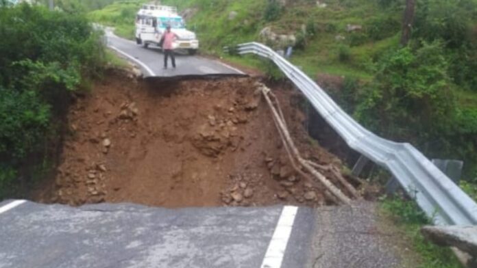 राष्ट्रीय राजमार्ग का बड़ा हिस्सा क्षतिग्रस्त,आवाजाही ठप