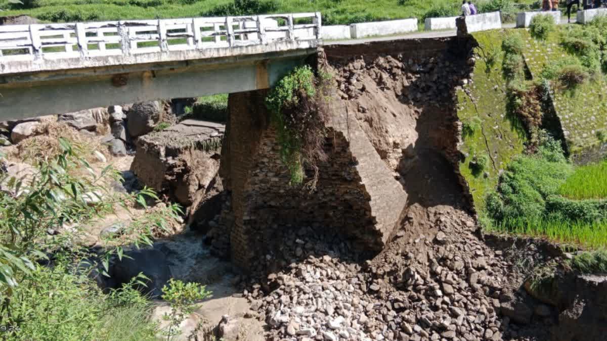 पौड़ी। गुरुवार देर रात थलीसैंण में बादल फटने से थलीसैंण-पीठसैंण-बुंगीधार मोटर मार्ग पर बगवाड़ी गांव के समीप पुल के एक हिस्से का पुश्ता क्षतिग्रस्त हो गया है। जिससे चैथान पट्टी के पांच से अधिक गांवों की आवाजाही ठप हो गई है। जबकि पट्टी के 80 गांवों की आवाजाही प्रभावित हुई है।